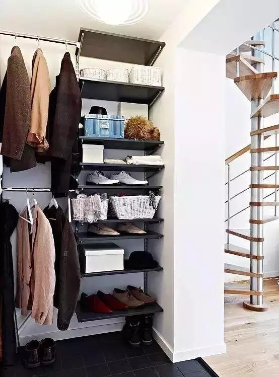 如果想要在家里裝一個(gè)嵌入式的衣柜,能把家里利用起來(lái)的角用起來(lái)就最好不過了,掛個(gè)簾子,后者裝個(gè)門,就可以當(dāng)衣帽間了,起碼可以收納相當(dāng)一部分的衣服呢。