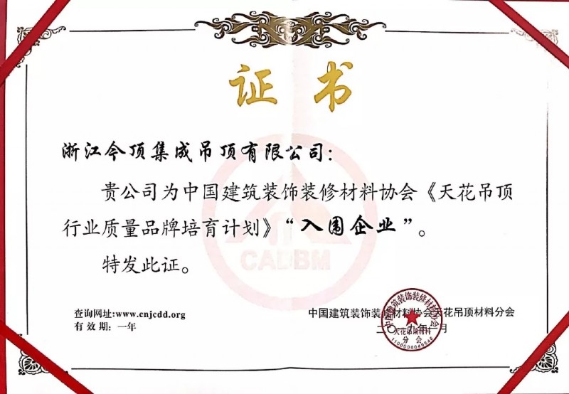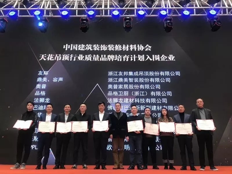 在本次會議上公布了中國建筑裝飾裝修材料協(xié)會天花吊頂行業(yè)質(zhì)量品牌培育計劃入圍企業(yè)名單。今頂作為行業(yè)領(lǐng)導者,攜手其他數(shù)十家品牌影響力居于行業(yè)首位的企業(yè)實力入選其中。