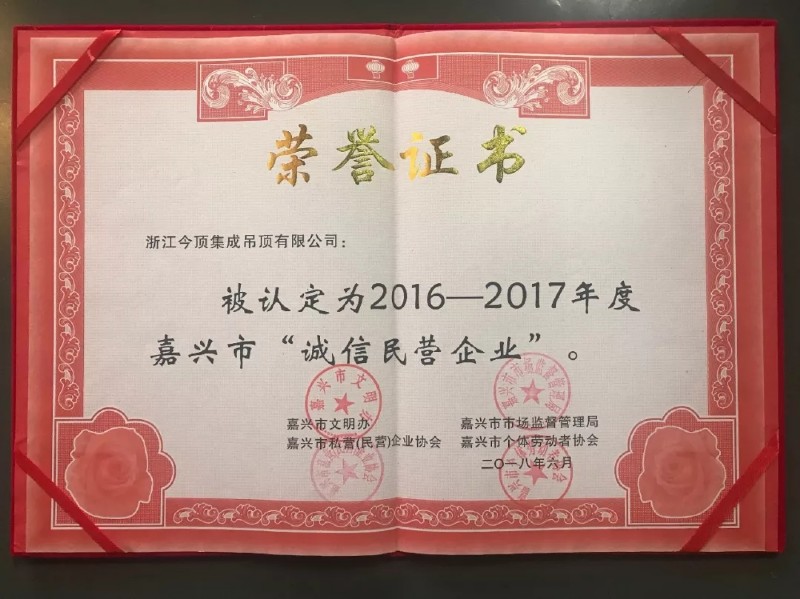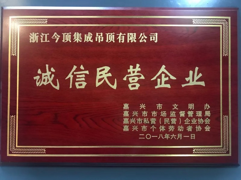 今頂榮獲嘉興市“誠信民營企業(yè)”稱號