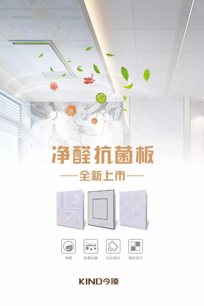 緊接著,今頂集成吊頂又推出了擁有自主研發(fā)技術(shù)的凈醛抗菌板系列。這種板材表面的凈醛抗菌層,可持續(xù)有效分解室內(nèi)甲醛,并且具有抗菌防霉功能。這款功能性的板材填補(bǔ)了市場(chǎng)的空缺,被廣大消費(fèi)者高度認(rèn)可。