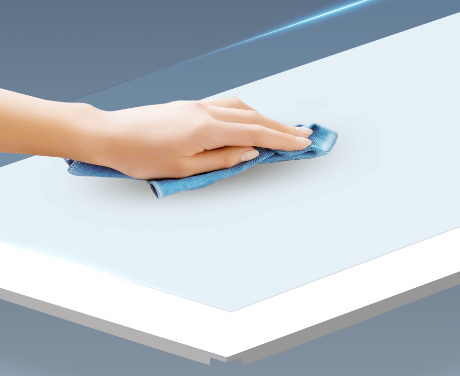 今頂高端抗油污大板不僅具備抗油污,不易臟的特性。清潔起來也更加輕松,輕度油污一擦即凈,即使頑固污漬,也可用抹布沾水輕松抹去,大大減輕清潔負擔,保持吊頂干凈不油膩,十年如新!